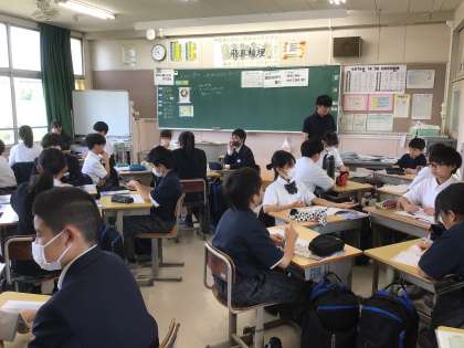 今日の道徳は「感謝の気持ちについて」です。バスの運転手とお客さんである高校生のやりとりをみた主人公が、感謝の気持ちを伝えるよさに気づくお話から、自分自身の行動を振り返りました。また、教育実習生が指導教官の授業を観察して勉強していました。生徒も教師も学びある時間となりました。