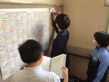 2年生は副担任の先生の呼びかけで、掲示物ボランティアが行われています。