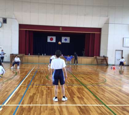 体力テストが終わり、バレーボールをやっています。