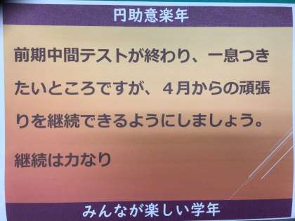 今日も1日、円助意していきましょう。みんなが楽しい学年になりますように。