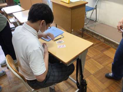正と負の足し算では、トランプの赤と黒でプラスマイナスを分けて、同時に出して計算した数を言う。