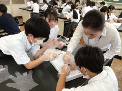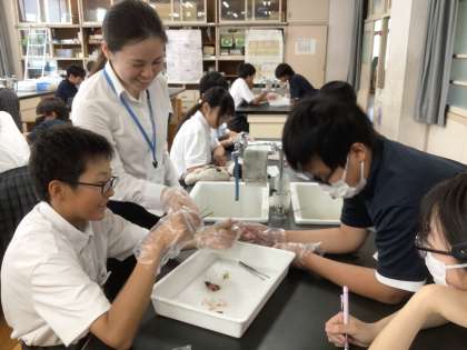 生徒たちは、エビの生臭さや内臓の見た目に驚きながら、解剖観察に積極的に取り組んでいました。
