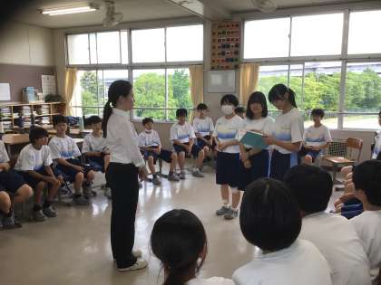 今日で教育実習を終えられる二人と、各クラスでお別れ会を行いました。