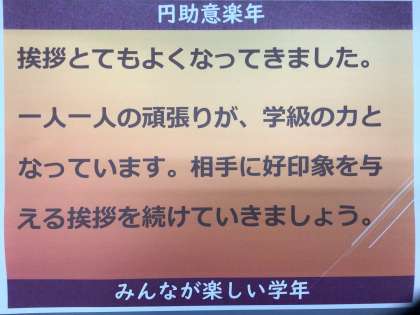 今日も1日、円助意していきましょう。みんなが楽しい学年になりますように。