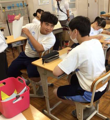 今日は、「きちんと聞いて、わかりやすく伝える力」を課題に図形伝言ゲームを行いました。