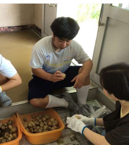 理科の授業で育てたじゃがいもを収穫しました!