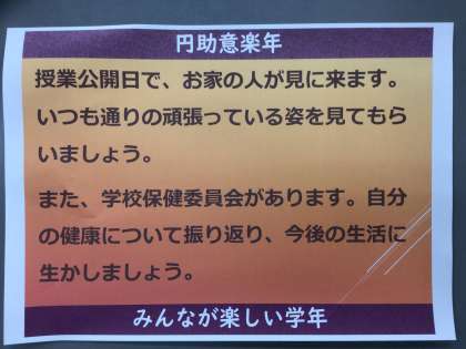 今日も1日、円助意していきましょう。みんなが楽しい学年になりますように。