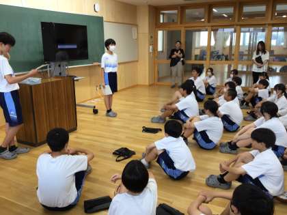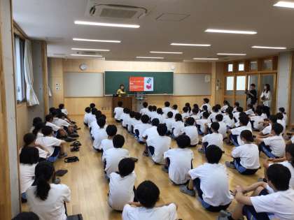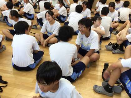 養護教諭の永井先生から、心と体の健康に関するハートメディア集会が行われました。今年度最初の集会は、『コミュニケーションスキルを身に付けよう』でした。スキルは能力とは異なり、経験を通して身につけることができるので、実践して磨いていきましょうと話があり、実際に笑顔や相槌を交えながら、実践を行いました。集会後に3組の室長から「誰かが話しているときに、頷いてくれると不安な気持ちにならず、安心して話すことができる。」と相手の立場にたった話がありました。TRYを積み重ねて、スキルを磨きましょう。