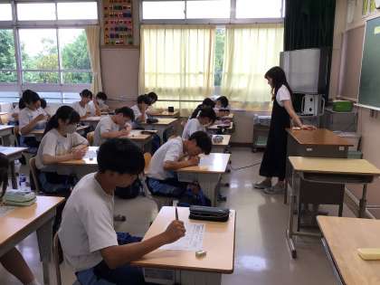 3年生の各教室で、合唱発表会の曲を聞きました。