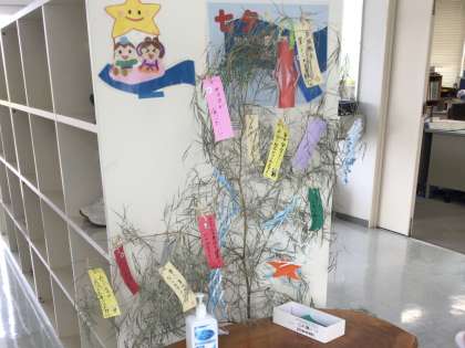 給食センターでは、皆さんの健康を願って短冊が飾られていました。