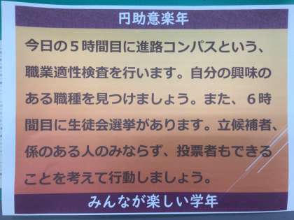 今日も1日、円助意していきましょう。みんなが楽しい学年になりますように。