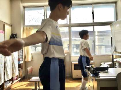 いつも通りラジオ体操からスタート!