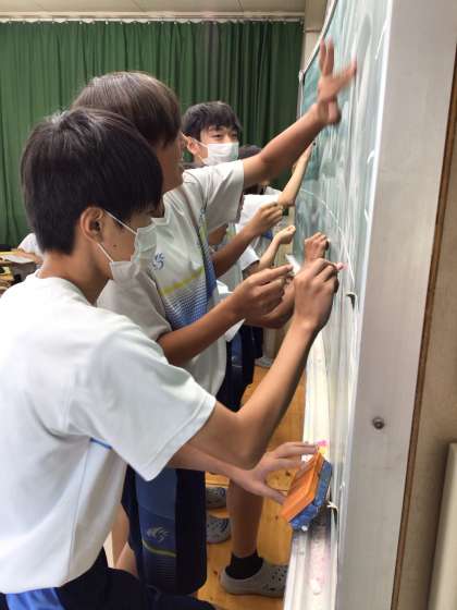 チームで協力して不定詞を活用しながら、面白い文を作っていました。
