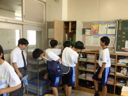 社会科の授業で地理の学習を行っています。アジア州について課題をもって学習に取り組む授業でした。「メイドイン◯◯を探せ!」と教科担任から司令が出て、教室内を動き回りました。座学のみならず、前のめりに学習できるように、教科担任による工夫がある授業でした。生徒の中には、「なんでメイドイン日本と中国しか見つけられないんだろ?」と疑問をもつ人もいました。今後の社会の勉強が楽しみですね。