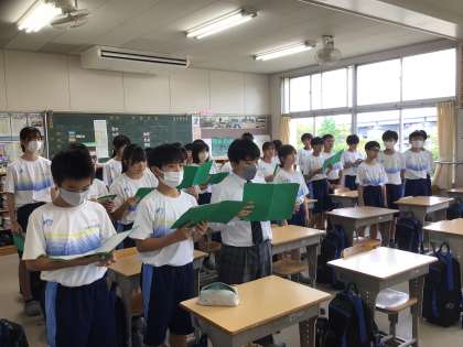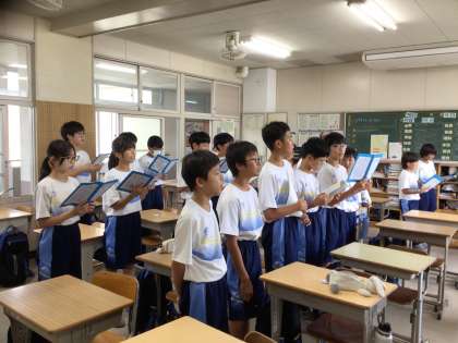 お昼の休み時間を利用して、どの学級も生徒が自主的に合唱練習を行っていました。パート練習をするクラス、合わせて歌うクラスと練習方法は様々ですが、「円助意のみんなが楽しい」を実現する様子がありました。大変頼もしく感じます。