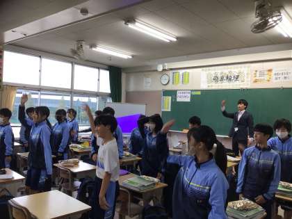 お昼の休み時間を活用して、応援コンクールの練習を行っています。3年生の思いに応えようと一生懸命に踊っていました。また、学級の応援リーダーが、前に出て、アドバイスしていました。3年生と体育祭練習を共にし、先輩から学ぶ姿が素晴らしいです。
