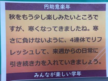 今日も1日、円助意していきましょう。みんなが楽しい学年になりますように。