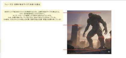 相似な図形を作図して川幅を求めたり、写真の相似比から怪獣の身長をもとめ、面積比や体積比を用いて討伐するのに必要な道具の大きさや量を計算したりしました。