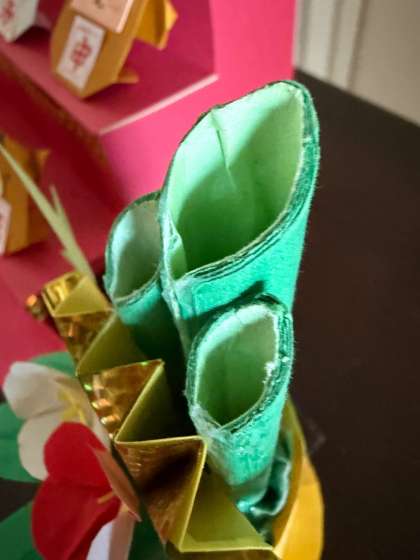 すべて紙でできています。紙を何枚も重ねて竹の厚みを表現しているところなど思わず唸らされました。技術もさることながら、「こうしたらどうだろう」という発想を具現化しているところが素晴らしいですね!