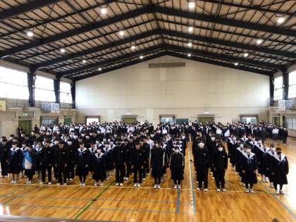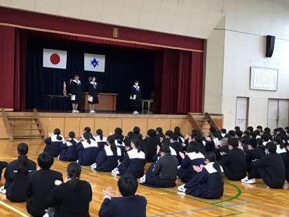 全校集会では、表彰伝達・報告がありました。その後、校長先生のお話を聞きました。