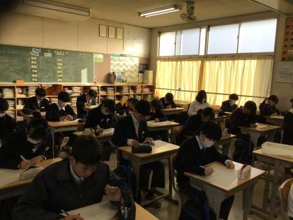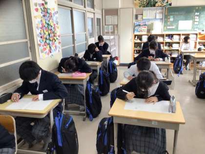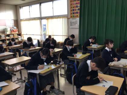 総合の時間を活用して、1月29日木曜日に行われる学習診断テストについて説明がありました。説明後には、英語の問題を解くなど、前のめりに学習に取り組むことができました。