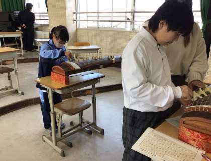 そのあとは各学年に分かれ、卒業式の歌、琴の演奏を行いました。