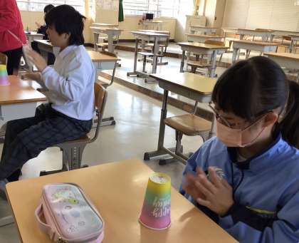 好きな曲にあわせて楽しく、カップの音を合わせながら演奏しました。
