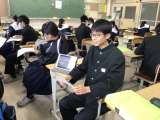 各学年の代表者によるスピーチです。1年間の振り返りと来年度への抱負を話してくれま...