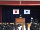 若中賞や部活動の大会、書き初め大会など多くの表彰伝達、報告がありました。