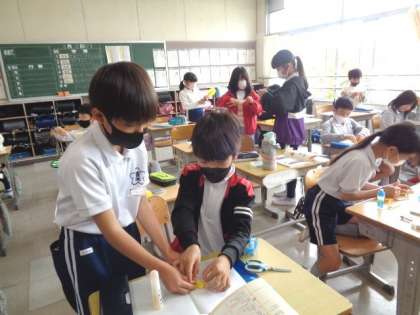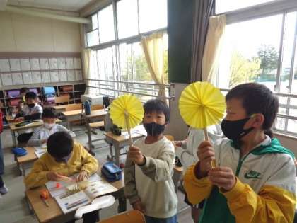 4/12 算数(4年生) 公開日 2023/04/12 更新日 2023/04/12 校長室から 「角とその大きさ」 色紙と割りばしで、丸く開く扇を作りました。 扇を開いて、いろいろな角の大きさを調べていきます。