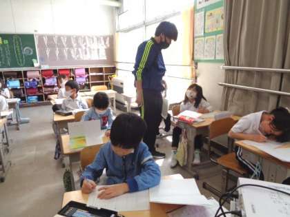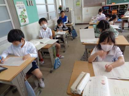 4/13 国語(2年生) 公開日 2023/04/13 更新日 2023/04/13 校長室から 「いくつあつめられるかな」 友だちに伝えたい出来事を考えます。 一生懸命思い出しながら、メモをしていました。