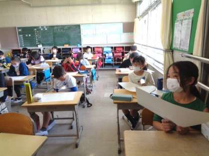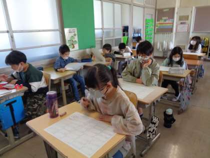 それぞれが考えためあてを見ながら、どんな級訓がいいか話し合っていました。