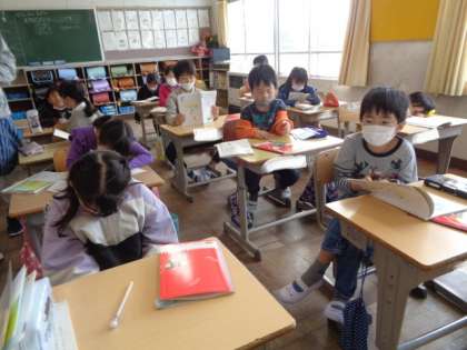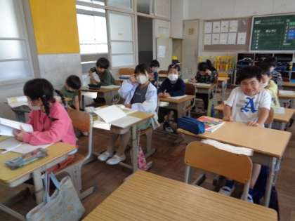 4/17 国語(2年生) 公開日 2023/04/17 更新日 2023/04/17 校長室から 「風のゆうびんやさん」 風の郵便屋さんが、順に郵便配達していくお話しです。 登場人物の様子を思いうかべながら、音読の練習をしていきます。