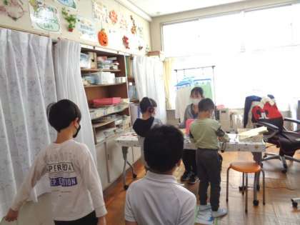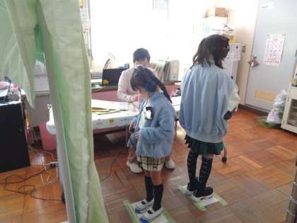 保健室で、聴力検査を行っていました。