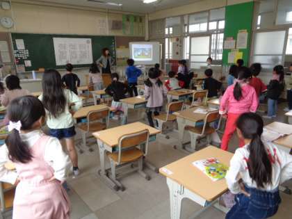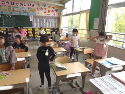 4/24 音楽(1年生) 公開日 2023/04/24 更新日 2023/04/24 校長室から 「チェッチェッコリ」 音楽が、だんだん速くなっていきます。 リズムに合わせて、友だちと一緒に、楽しく踊っていました。