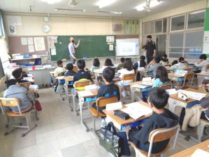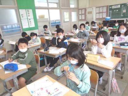 4/25 外国語活動(4年生) 公開日 2023/04/25 更新日 2023/04/25 校長室から 「Good morning. Good evening.」 午前・午後のあいさつについて、ALTの先生と一緒に学習していました。