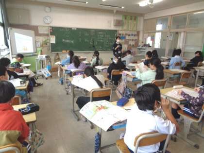 4/26 外国語(5年生) 公開日 2023/04/26 更新日 2023/04/26 校長室から 「What colors do you like?」 英語での色の言い方を学習します。 食べ物の絵と合わせて考えていました。