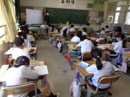 青木小の周りにあるものについて考えます。