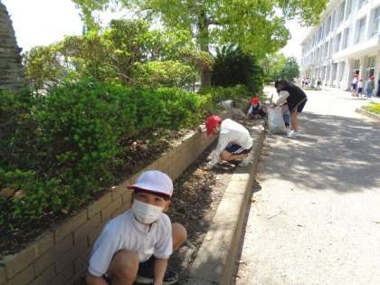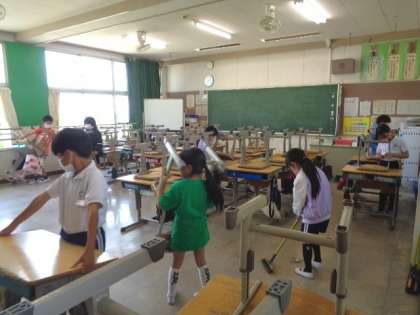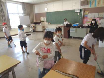 5月から、1年生もたてわり清掃に参加します。 6年生がリーダーとなって、がんばって活動しています。