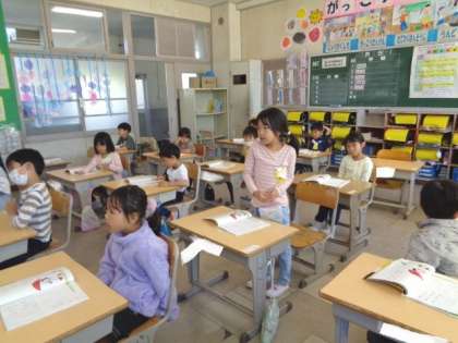 5/8 国語(1年生) 公開日 2023/05/08 更新日 2023/05/08 校長室から 「あめですよ 教科書を読んで感じたことを発表していました。 ことばのリズムや挿絵など、いろいろな視点からたくさんの気づきを発表していました。