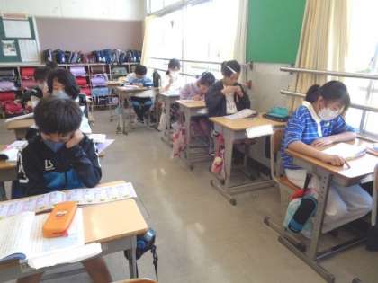 5/8 国語(6年生) 公開日 2023/05/08 更新日 2023/05/08 校長室から 「イースター島には、なぜ森林がないのか」 ドリルを使って漢字の練習です。 特に新出漢字は、空書きをするなどして、ていねいに確認していました。