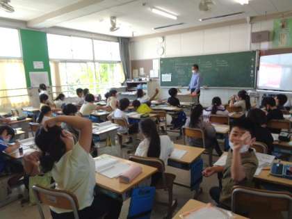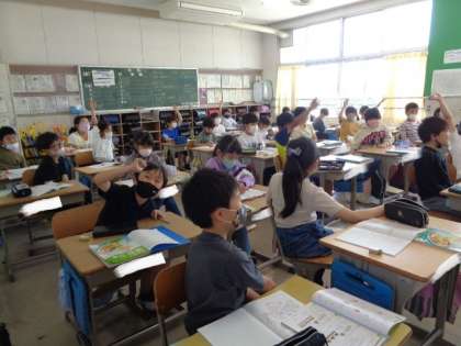 「わり算」 何十や0をわるなど、答えが九九にないわり算の求め方について、みんなで考えていました。
