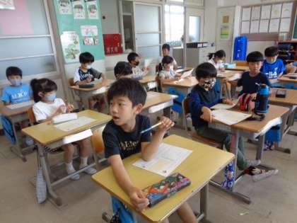 5/10 道徳(2年生) 公開日 2023/05/10 更新日 2023/05/10 校長室から 「ぽんたとかんた」 教科書のお話を読んで、登場人物の行動について考えながら、よいことをするために、大切にしたいことを話し合っていました。