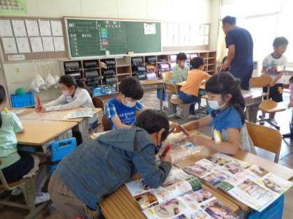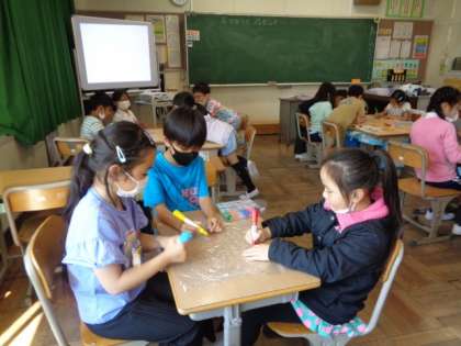 5/11 図画工作(2年生) 公開日 2023/05/11 更新日 2023/05/11 校長室から 「ひかりのプレゼント」 光を通した色を楽しみながら表現する活動です。 セロファンにマジックで色を塗って、見え方を確かめてみるそうです。