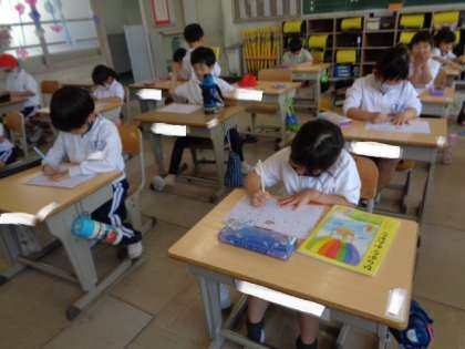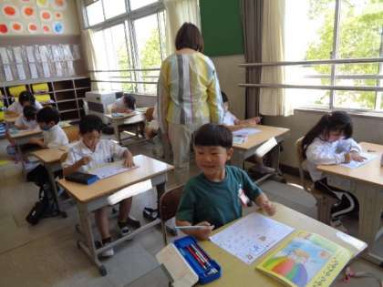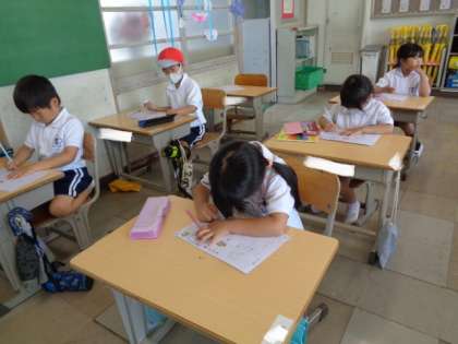 今日は、「め」の練習です。 お手本を見ながら、ていねいに練習します。