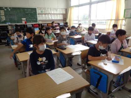 自分のよいところや伸ばしたいところを考えながら、今年度の目標を立てていました。