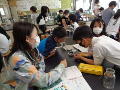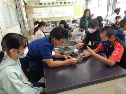 5/12 理科(6年生) 公開日 2023/05/12 更新日 2023/05/12 校長室から 「ものの燃え方」 ものが燃える前と燃えた後の空気の違いについて学習します。 実際に火を燃やす実験をして、酸素・二酸化炭素について確かめていました。