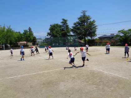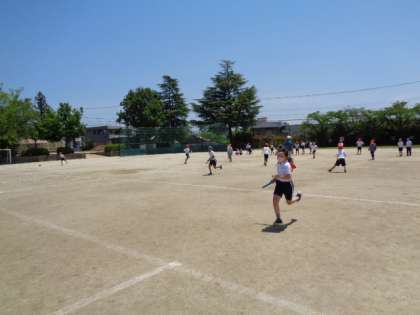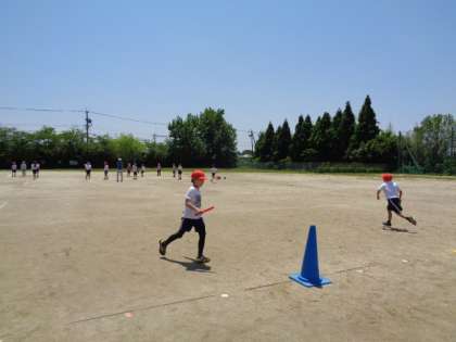 バトンゾーンを作って、バトンを渡す練習もしていました。
