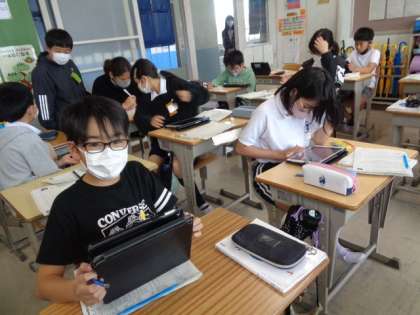 5/19 国語(6年生) 公開日 2023/05/19 更新日 2023/05/19 校長室から 「イースター島にはなぜ森林がないのか」 学習したことを生かして、説明文を書くそうです。 それぞれが選んだ身の回りの「なぜ」をテーマに、組み立てを考えていました。