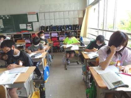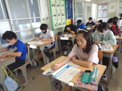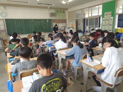 5/22 国語(6年生) 公開日 2023/05/22 更新日 2023/05/22 校長室から 「イースター島にはなぜ森林がないのか」 原因と結果、事実と考え等、わかりやすく記述している筆者の論の進め方について、みんなで確認していました。